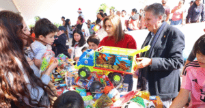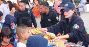 Como parte de la jornada, elementos de la corporación realizaron la entrega de juguetes a las y los menores, acompañados por Santa Claus, quien llegó a bordo del helicóptero Halcón. Esta dinámica formó parte de un despliegue preventivo con enfoque lúdico, creado para generar cercanía entre la autoridad y la comunidad, así como para fortalecer la confianza de la población infantil en las instituciones de seguridad.