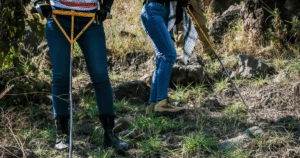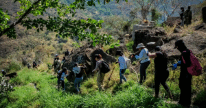 Igualmente, se realizaron maniobras de rápel debido a las condiciones geográficas de la barranca, mientras que en las tareas de prospección se emplearon herramientas manuales como picos, palas, machetes y sondas metálicas tipo “T”, lo que permitió efectuar exploraciones subterráneas en puntos anteriormente identificados.